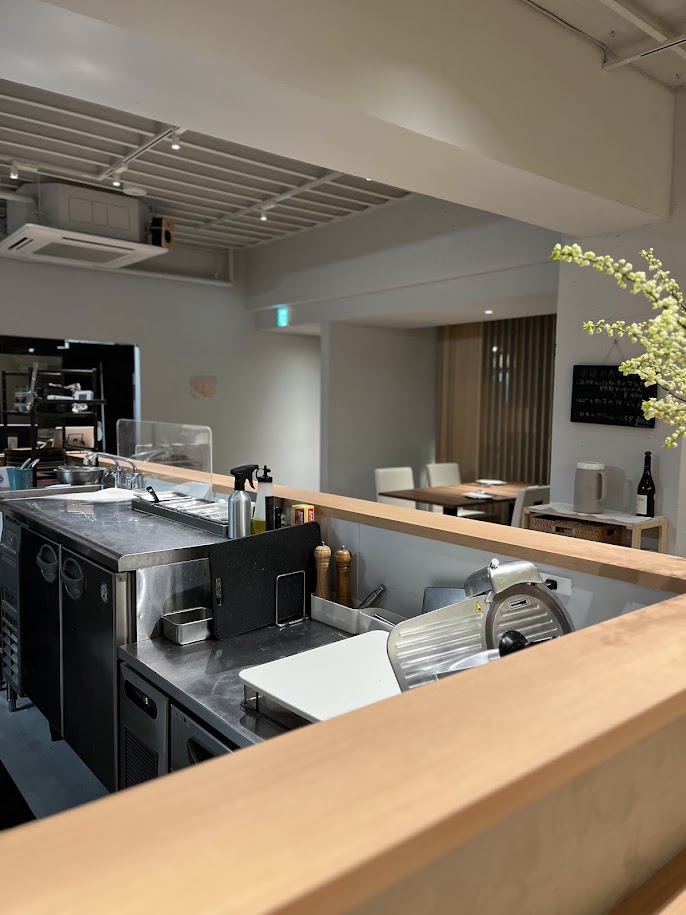 店内はこんな感じで、おしゃれ感のあるオープンキッチンの調理場。