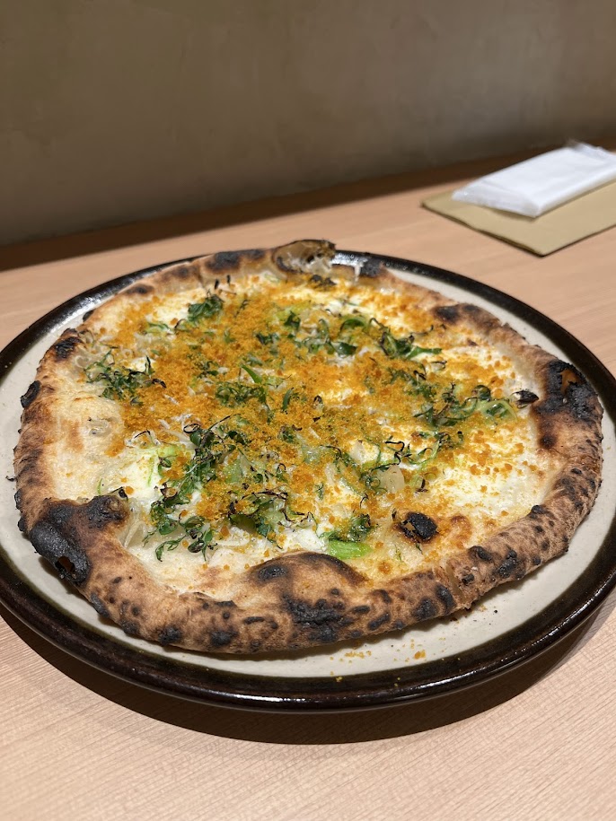 目の前で、ピザの具材を載せるところから焼くとこまで見せてくれます。