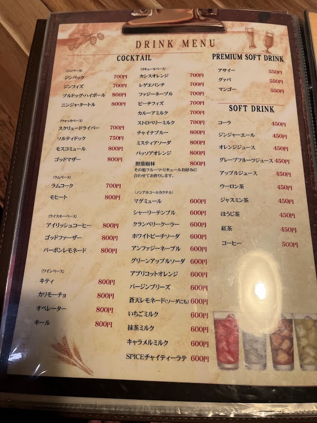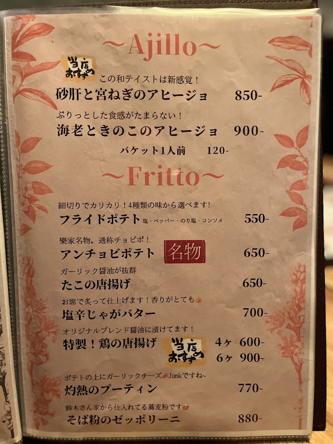 メニューは最後に載せますがこんな感じです。