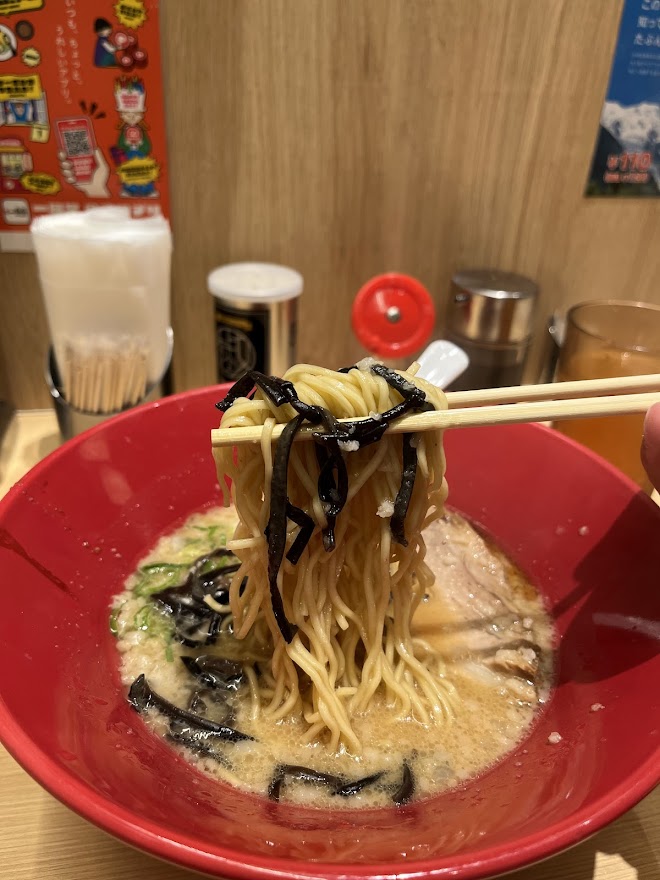 飲んだ後に締めのラーメンとすると、同じ豚骨で西口にある、〇るま家より、好きかも!