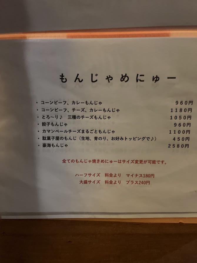 まあ、お好み焼き、もんじゃは、どこで食べても、一緒よね。