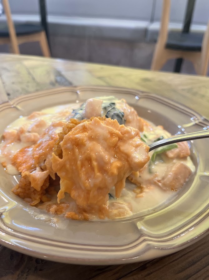 今回食べたのは、サーモンのクリームオムライス。