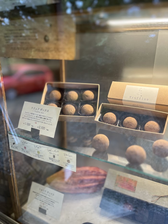 森の中の小さな建物に、こんな感じでチョコのショーケースが