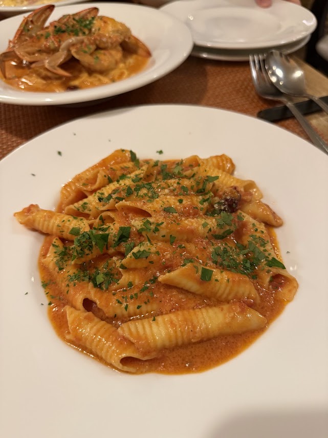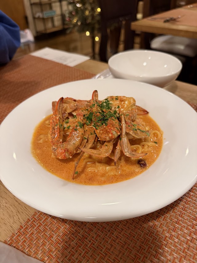 カニのトマトクリームパスタ。