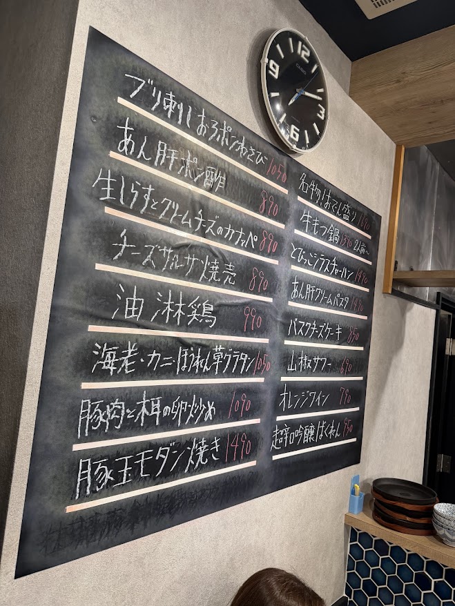 黒板メニューと、定番のメニューがこんな感じ。