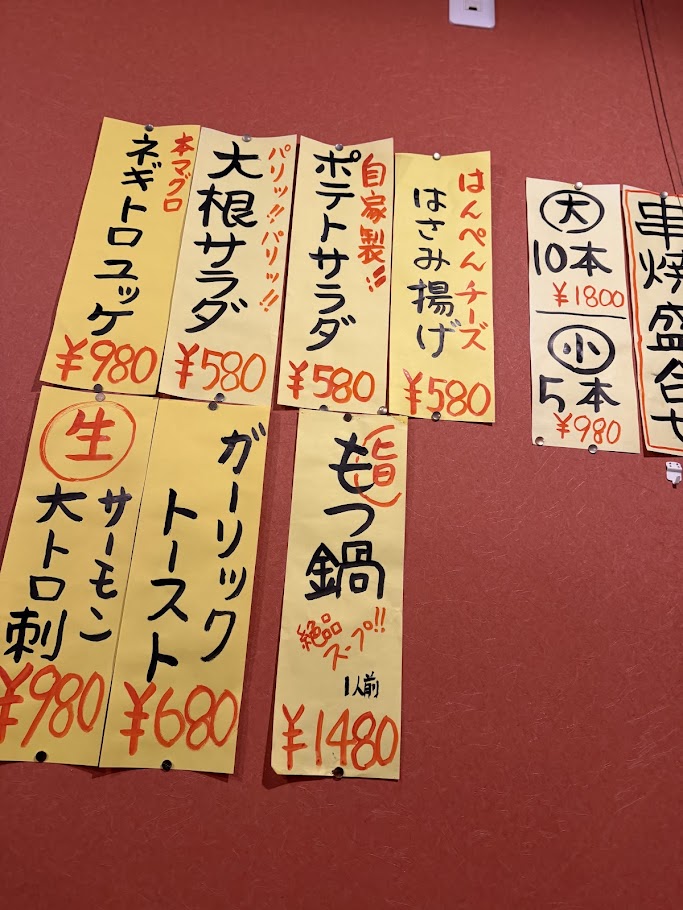 壁にはこんな感じでメニューが貼りつけられてます。