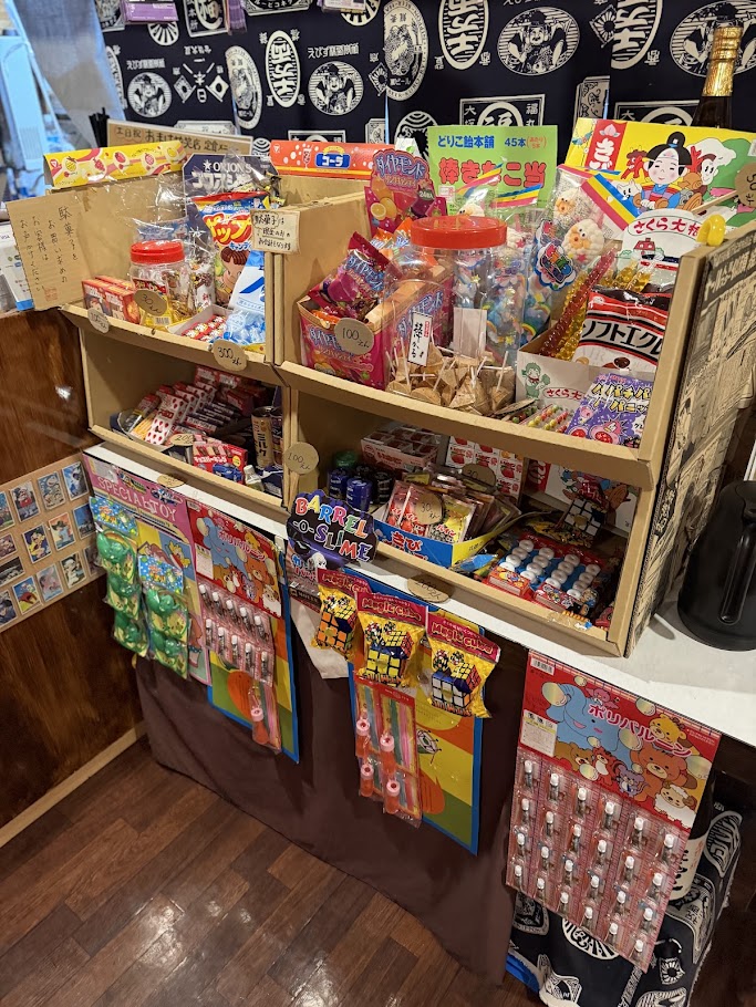店内にはこんな感じの飾りがあって、駄菓子屋感を演出。