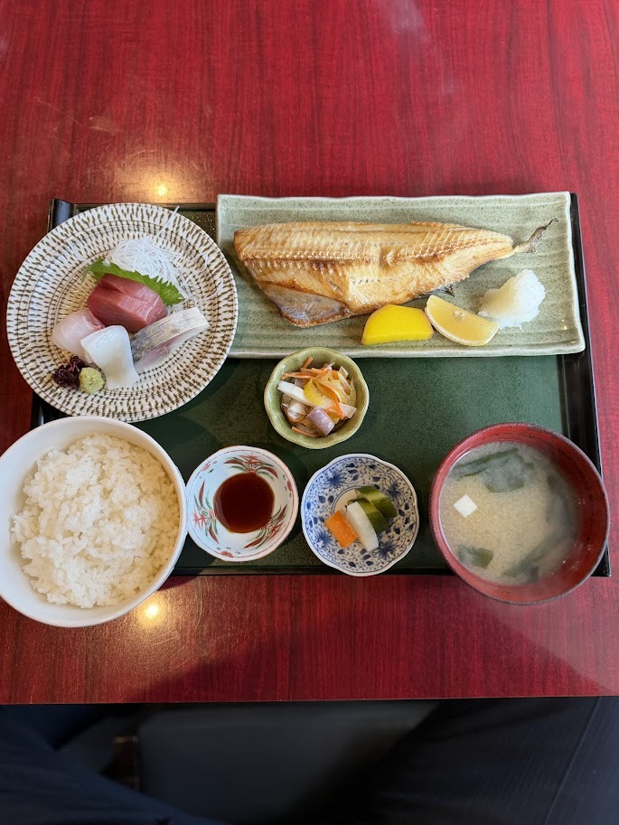 こちらが刺身とほっけ焼き定食。